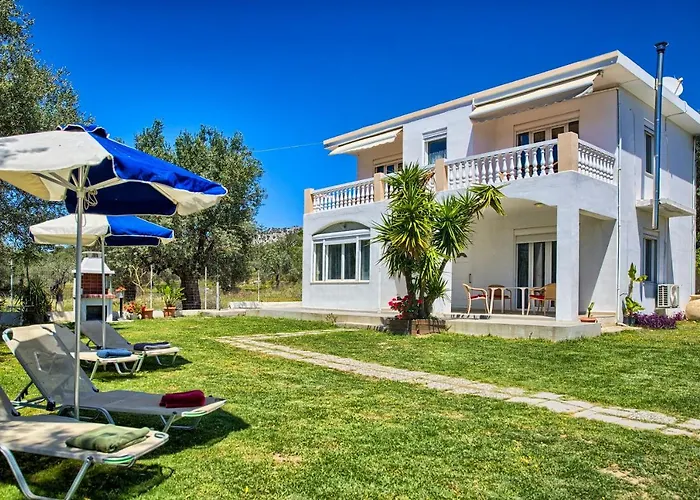 Situata a una distanza di 3 km dagli Agathi Beach, la Villa Agathi Sun Set Haraki offre una terrazza con vista sul giardino.